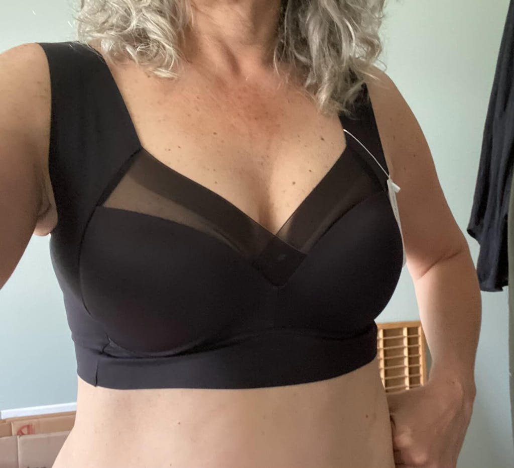 The Bra offers wireless support while being stretchable enough to NOT dig in and cause annoying back & armpit fat, smooths out side boobs, bulges & unsightly bra lines.