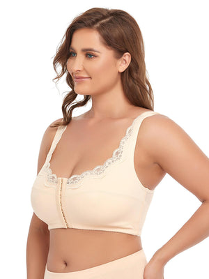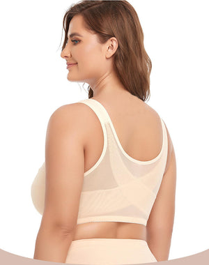 SENIORSBRA®FRONT CLOSURE WIRELESS POSTURE & BACK SUPPORT MESH LACE PUSH-UP BRA(BUY 1 GET 1 FREE)-BEIGE